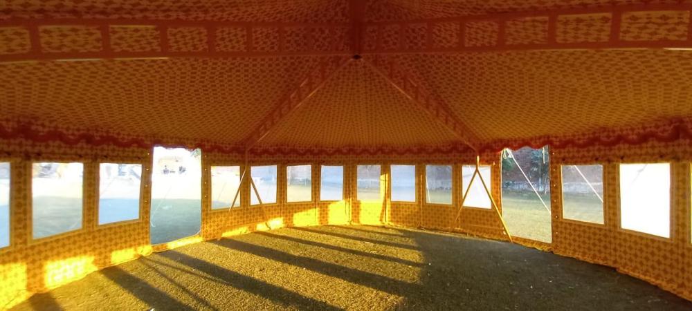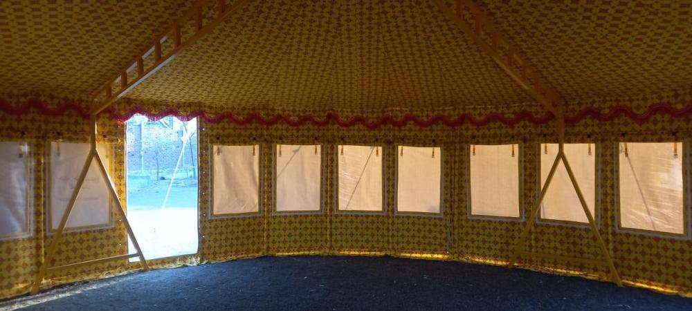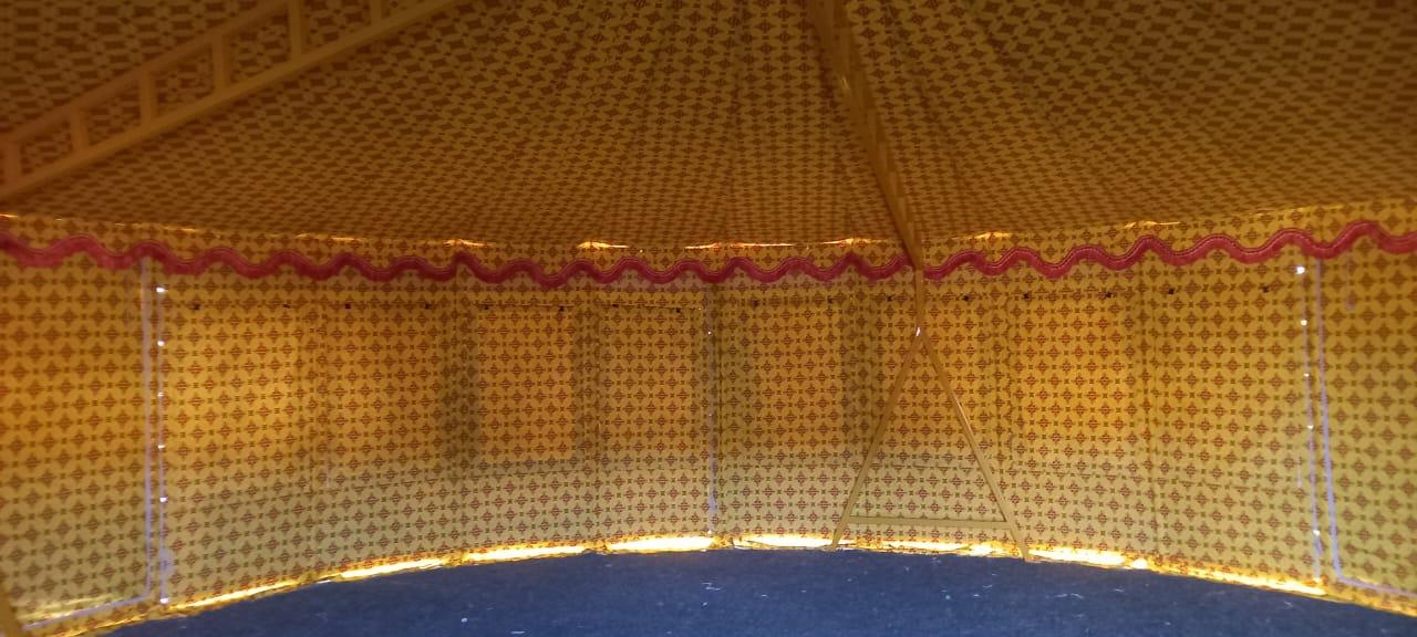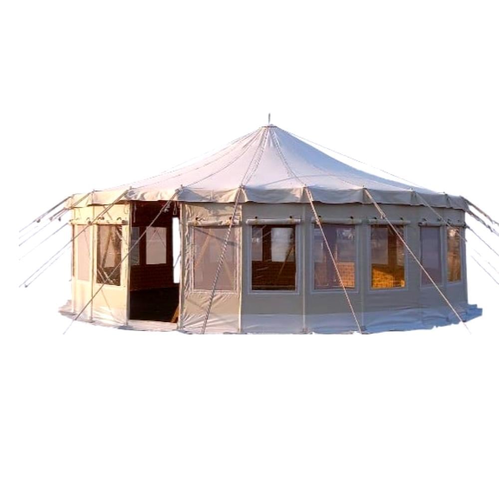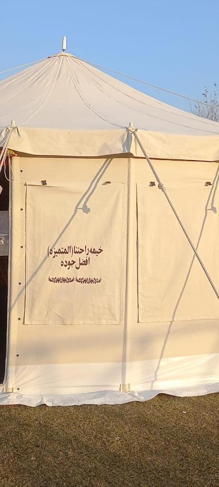 خيمه راحتنا المتميزة خيمة دائرية كبيرة ذات تصميم تقليدي فاخر، وتُستخدم غالبًا في الفعاليات والمناسبات الخارجية مثل الأعراس، المخيمات السياحية، أو جلسات الضيافة. إليك التفاصيل التي يمكن ملاحظتها: