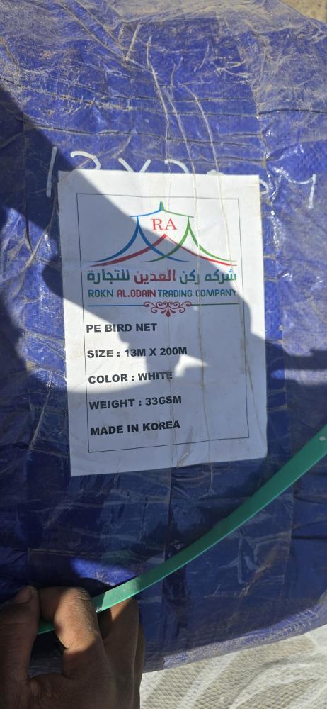 شبك عالي الجودة بمقاس 13×200 متر ووزن 33 جرام، مثالي لصيد الطيور بدقة وفعالية.