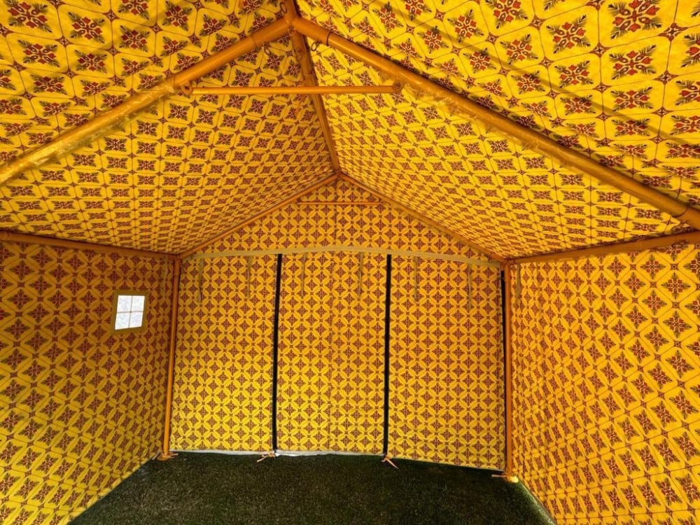 خيمة درجة أولى هرمية بدون اوتاد وعمود وسطي هيكل حديد